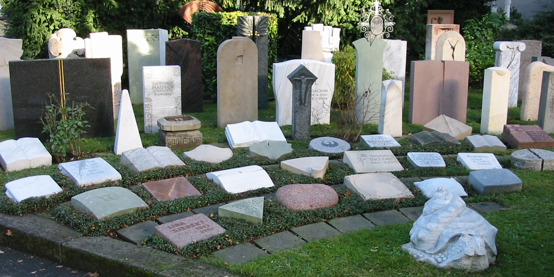 Viele Familien sind meist aus beruflichen Gründen auf weit voneinander entfernte Städte verteilt, so daß Familiengräber nicht mehr sinnvoll erscheinen und die Grabpflege zum Problem wird. Auch für alleinstehende, kinderlose Personen stellt sich die Frage nach dem Sinn eines Grabmales.